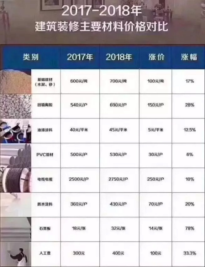 18年的裝修價(jià)格一定會(huì)上漲,不僅僅是原材料價(jià)格上漲,這幾年的人工費(fèi)也在增長(zhǎng)中?墒窃斐裳b修價(jià)格漲價(jià)的因素有哪些呢?