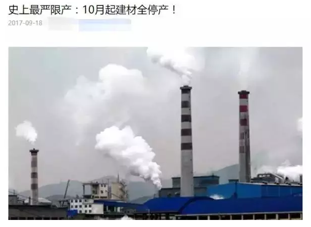 同時(shí),鋼鐵有色水泥行業(yè)全面限產(chǎn)停產(chǎn),采暖季唐山等城市鋼鐵限 產(chǎn)50%,電解鋁和氧化鋁企業(yè)限產(chǎn)30%以上,水泥建材全部停產(chǎn)。